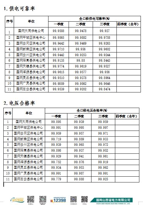 首頁(yè)信息公開(kāi) > 供電質(zhì)量和電力可靠性 > 國(guó)網(wǎng)大同供電公司